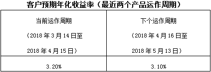 下个运作周期客户预期年化收益率于2018年4月16日(含)开始执行。