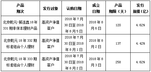 中国建设银行北京市分行定于2018年7月30日发行理财产品,现将相关发行情况公告如下: