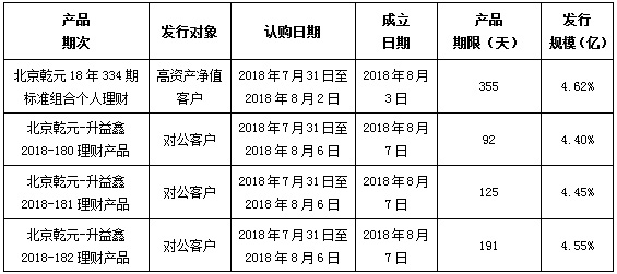 中国建设银行北京市分行定于2018年7月31日发行理财产品,现将相关发行情况公告如下: