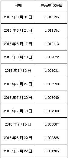 北京市分行“乾元-净享”2018年第1期净值型封闭式人民币理财产品(产品编号BJ072018243003M01)净值公布如下: