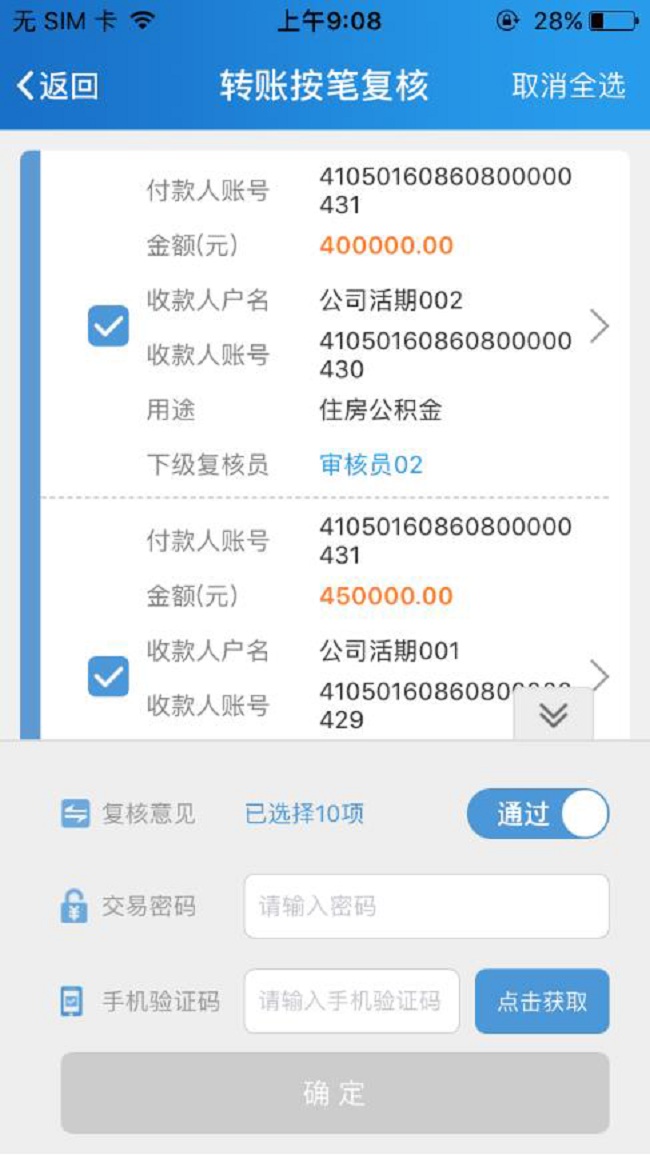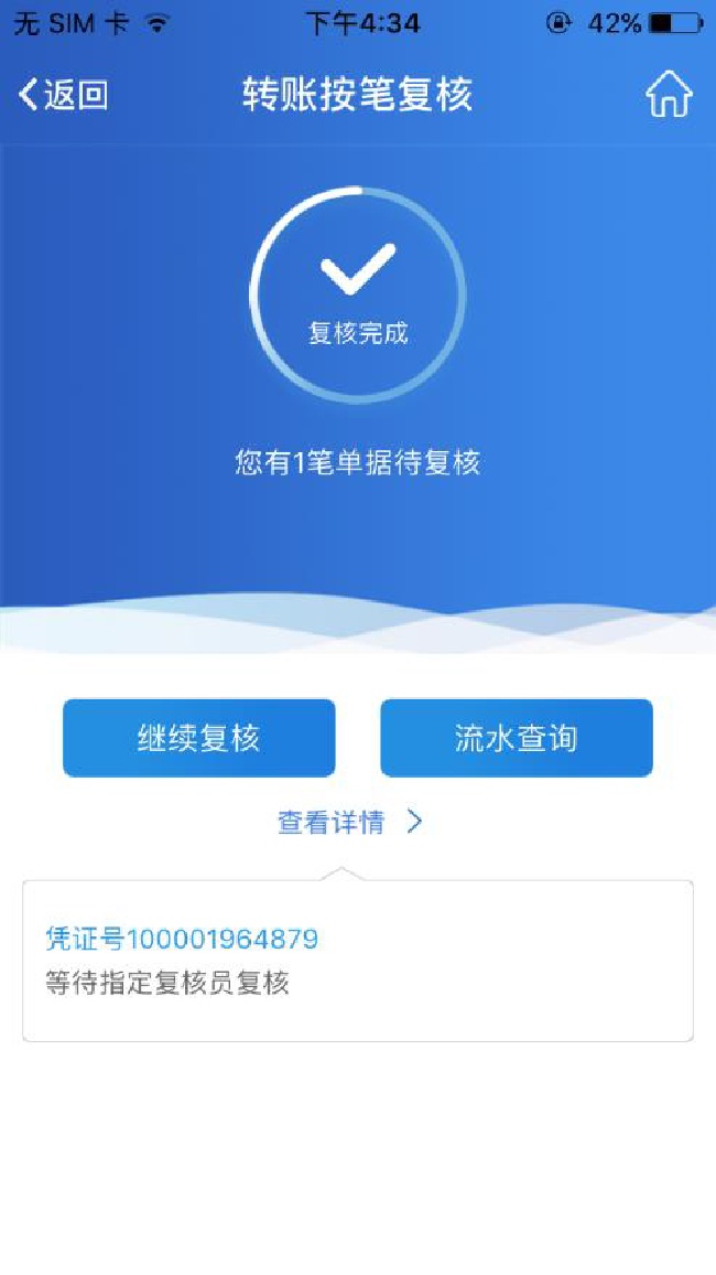 制单员完成制单操作后,复核员可以使用企业手机银行随时进行业务复核。